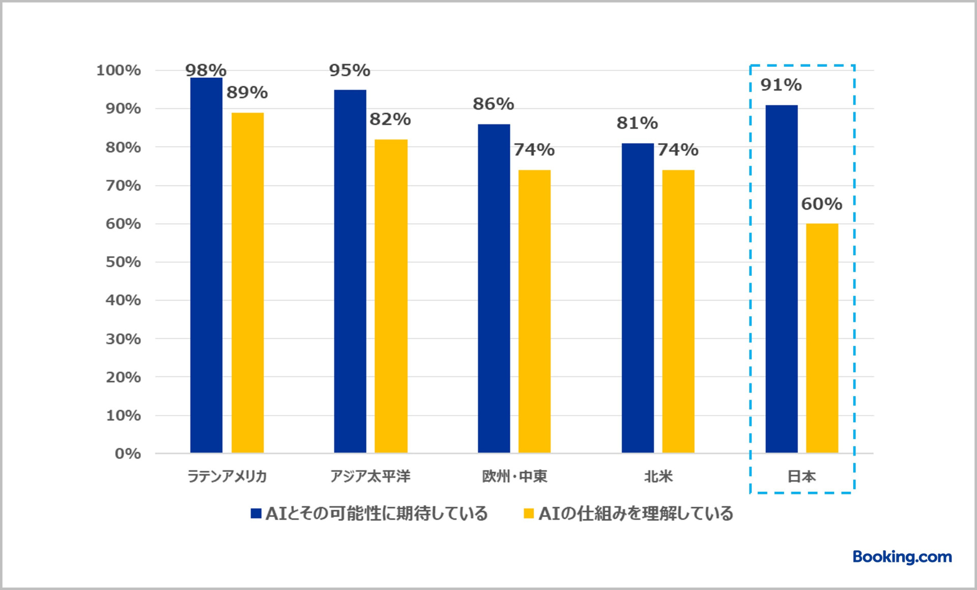 ブッキング・ドットコムの最新調査レポートから、人工知能(AI)に対する消費者意識が、 AIへの期待や不安、地域による違いによって形成されていることが明らかに
