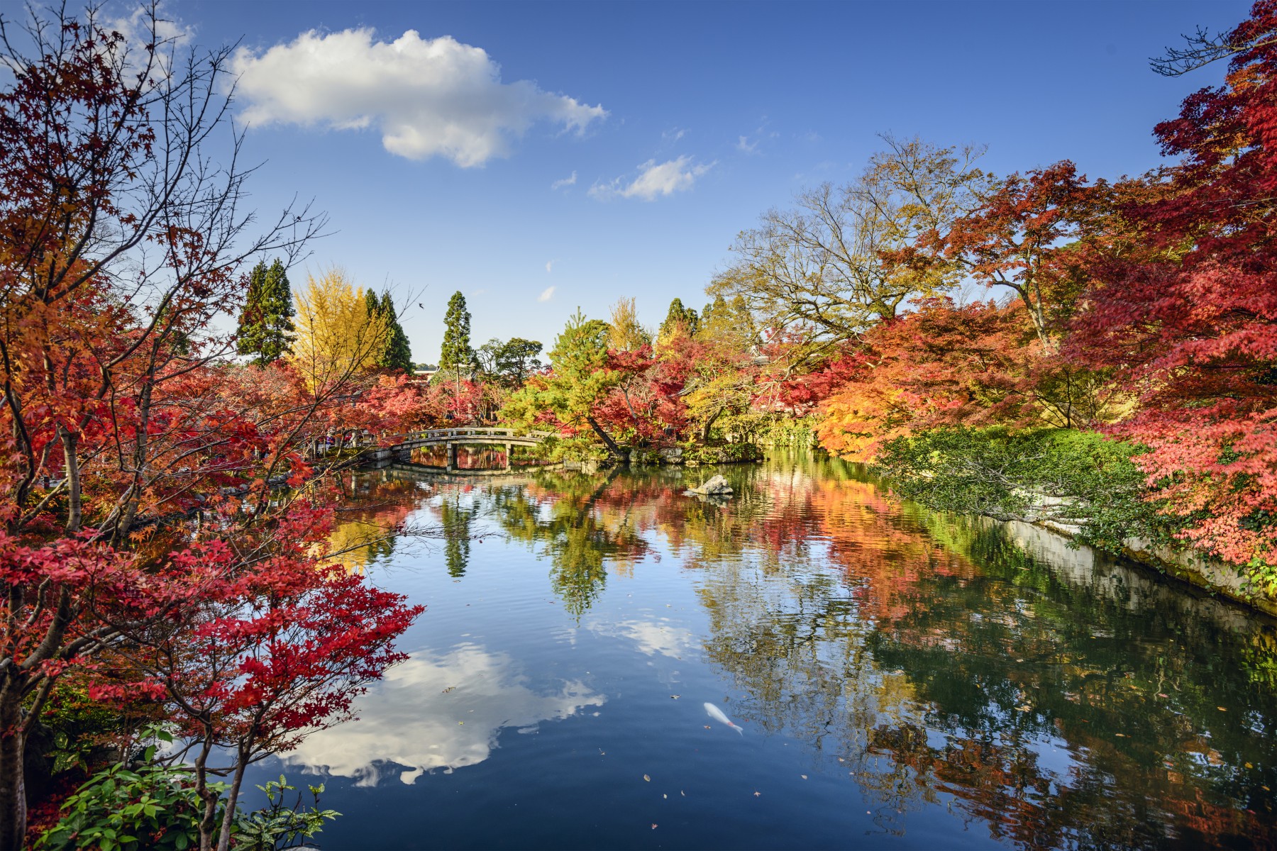 เกียวโต เป็นหนึ่งในสถานที่ดีที่สุดในโลกสำหรับการชมใบไม้เปลี่ยนสีในช่วงฤดูใบไม้ร่วง โดยช่วงที่ใบไม้เปลี่ยนสีอย่างเต็มที่คือเดือนพฤศจิกายน ซึ่งเป็นช่วงที่ใบของต้นเมเปิลเปลี่ยนเป็นสีแดงอย่างงดงาม และวัดวาอารามดูโดดเด่นขึ้นท่ามกลางสีแดงและสีเหลืองของแมกไม้